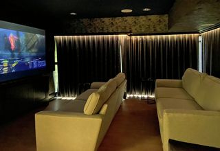 The cinema room features a 90” screen, advanced audio-visual equipment and was a culmination of six months of meticulous planning and collaboration. Silent Gliss contributed by installing three black electric curtain tracks SG 5600 with our Smart motors and components required to integrate with Control4. Additionally, we provided Wave curtains with Deep fabric and laser-cut finished hems.