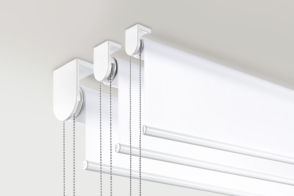 Our new large roller blind systems now offer the same sleek design, as our small and medium systems, for a cohesive aesthetic across the range. A uniform bracket design ensures a contemporary, streamlined appearance, making it easier than ever to combine different systems within a project. Carefully considered details, including screw covers and colour-matched components in white, black and grey, ensure a flawless finish that complements any design style. High-quality fabrics for glare and privacy protection from the Silent Gliss “The Collection” round off the range.