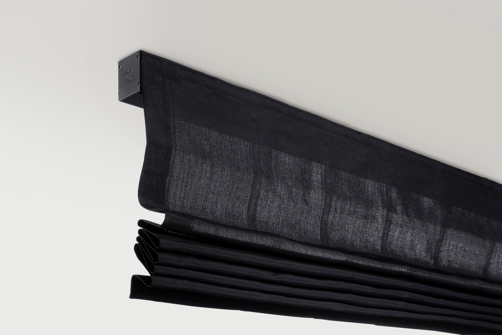 Our latest motorised Roman blind collection combines seamless design with advanced functionality. Featuring a sleek headbox with elegant, refined covers, every technical component is discreetly hidden behind a stylish fascia. Available in perfectly colour-matched white or black, the systems are designed to blend harmoniously with any interior, elevating both residential and commercial spaces.